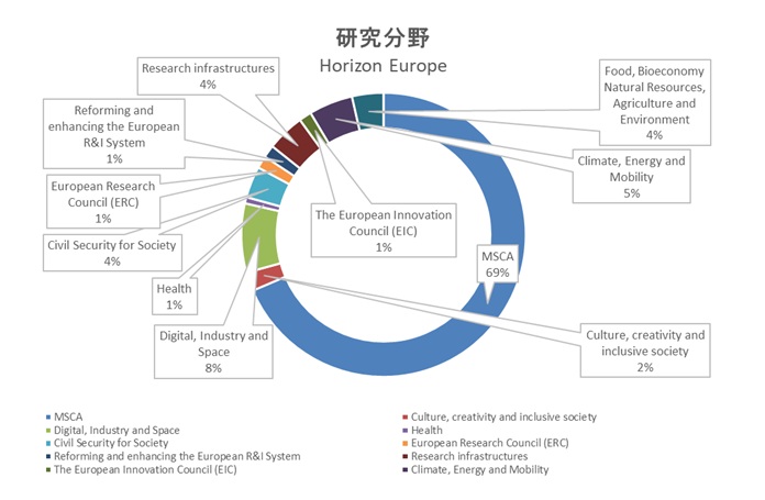 テーマ別では、マリーキュリーアクション(MSCA)関連プロジェクトが68%を占めています。